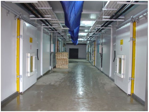 當(dāng)前絕大部分的中小型食品冷庫(kù)設(shè)計(jì)時(shí)采用的一般是100mm聚氨酯庫(kù)板,環(huán)境溫度一般取32℃,貯藏比重取5m3/t,進(jìn)貨量30%。但是在實(shí)際的操作中,客戶一般就告知“我要造多大多大的食品冷庫(kù)”,“溫度打到多少多少度”,然后我們的工程師到工地上面進(jìn)行尺寸測(cè)量來(lái)決定最終的大小。